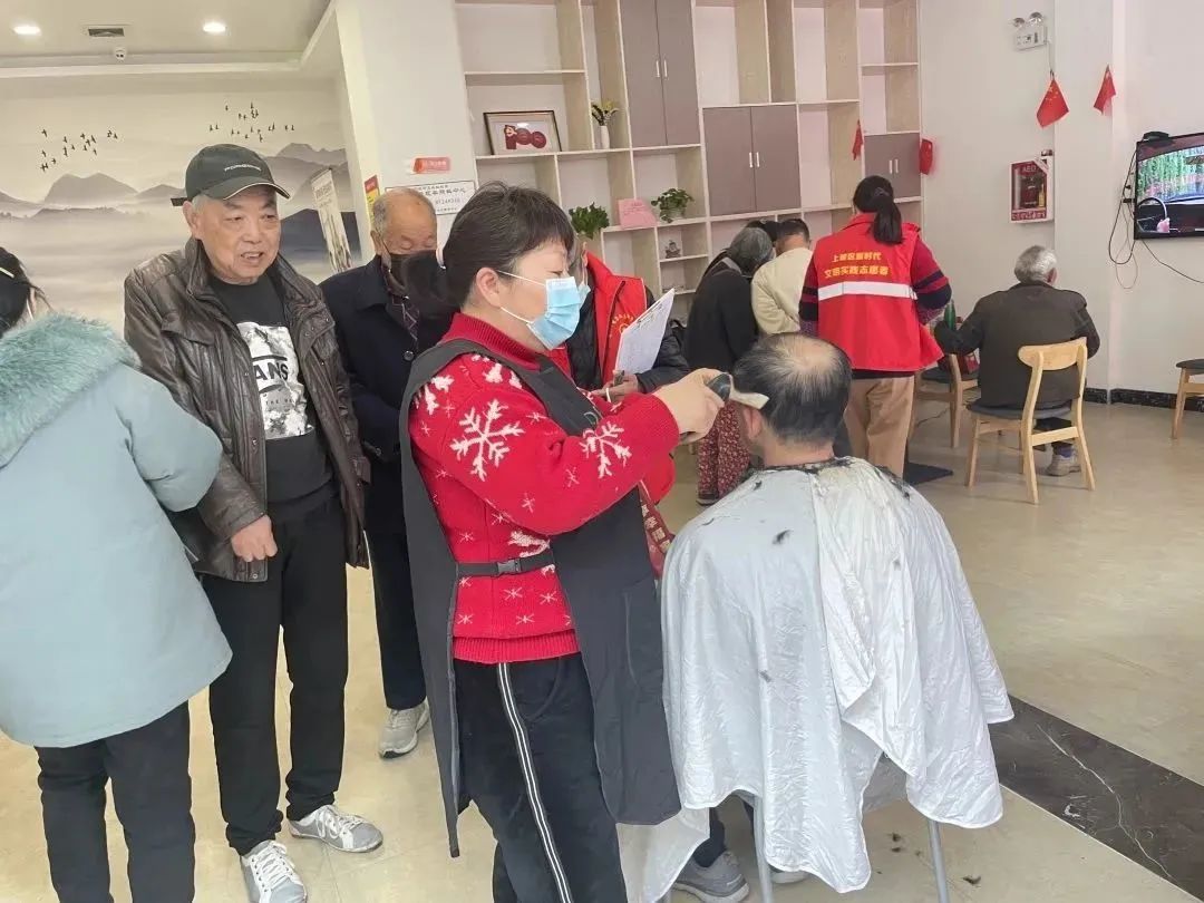 辖区居民在活动现场来回穿梭,络绎不绝,场景好不热闹。老年朋友们自觉在摊位前排起了队伍,有的先去理发,有的陪孩子玩沙画和黏土,大家都轮流光顾每一个摊位。各个摊位的志愿者带给居民真诚的服务,让居民在享受生活服务便利的同时,也传递着志愿服务精神。